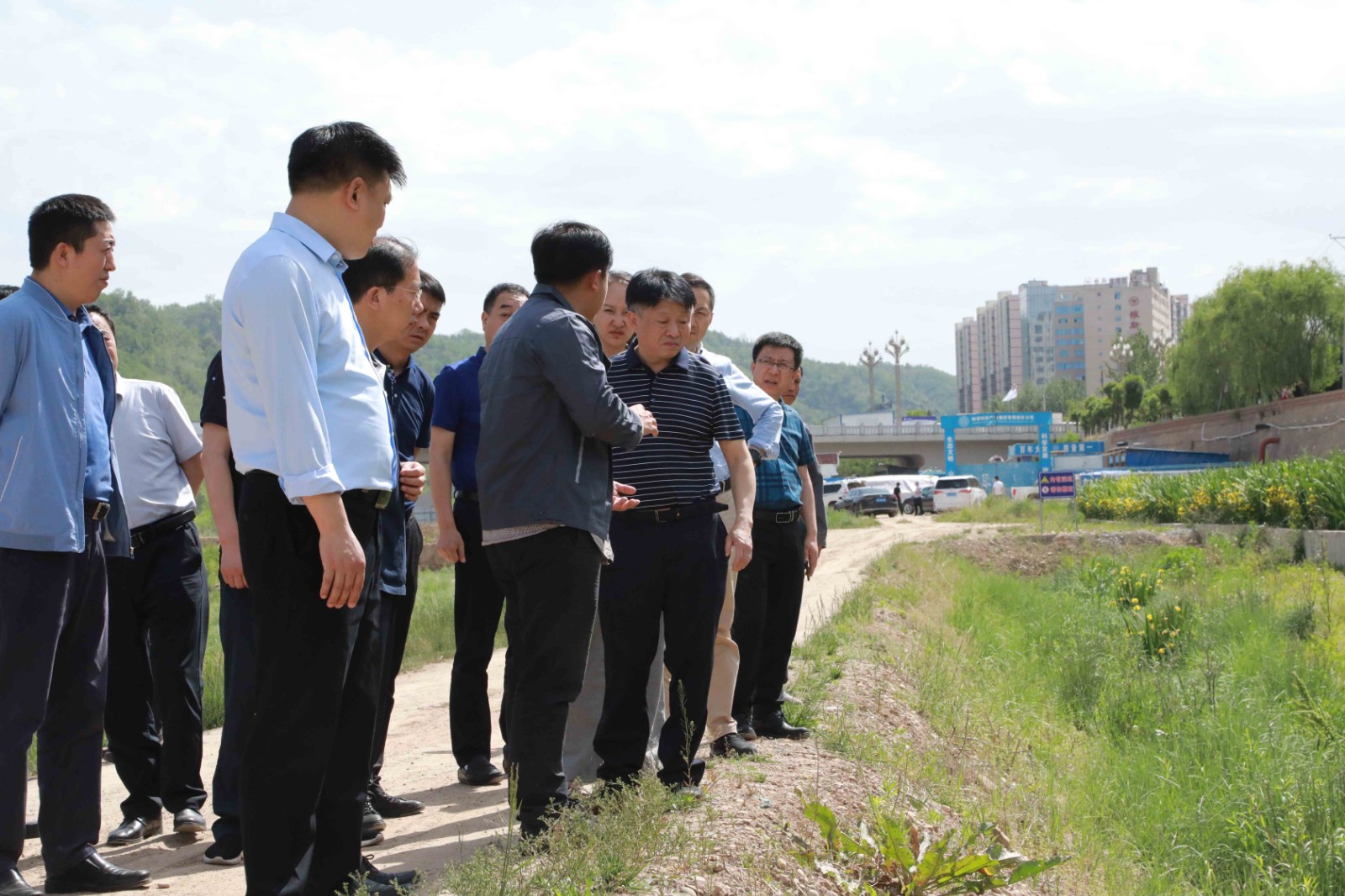 19日中午一到延安,熊良虎一行在看望慰問延安分公司干部職工后,便馬不停蹄來到生態(tài)公司延河陽柳橋至朱家溝段濕地修復工程項目,實地察看了項目施工進度、工程質(zhì)量等,與施工人員就項目建設情況與市民群眾進行了深入交流。