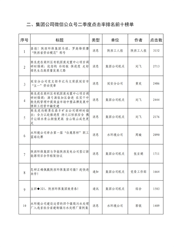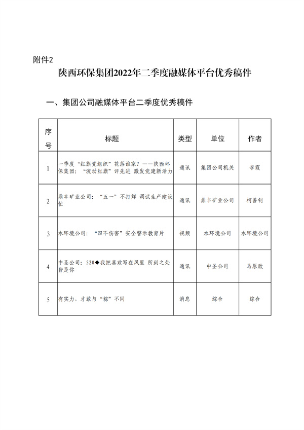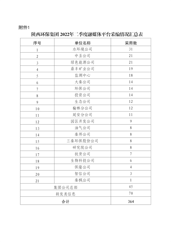 陜西環(huán)保集團(tuán)2022年二季度融媒體平臺(tái)稿件采用及優(yōu)秀稿件評(píng)選情況通報(bào)