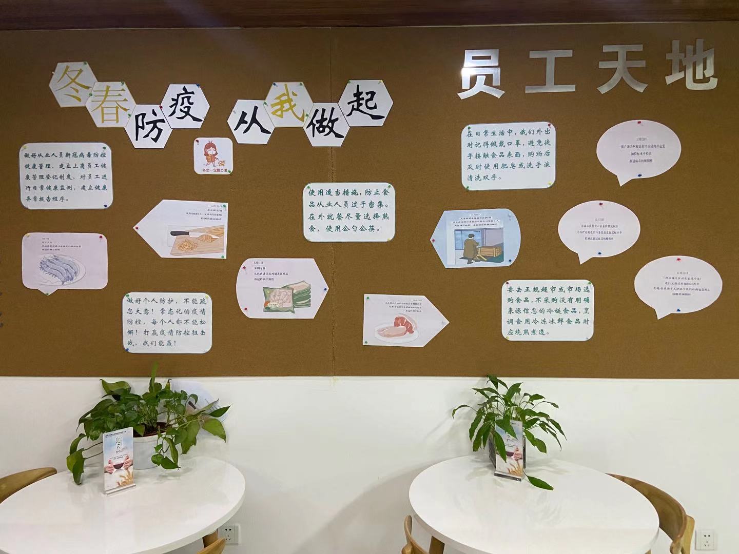 開(kāi)展防疫宣傳教育。多方式多渠道對(duì)員工進(jìn)行防疫知識(shí)普及工作。擺放測(cè)溫標(biāo)識(shí)、在辦公區(qū)域內(nèi)張貼防疫海報(bào)、在員工天地開(kāi)設(shè)疫情防護(hù)專欄,對(duì)防疫措施加強(qiáng)宣傳,普及疫情防控知識(shí),提醒職工做好防護(hù)。(王佳媚)
