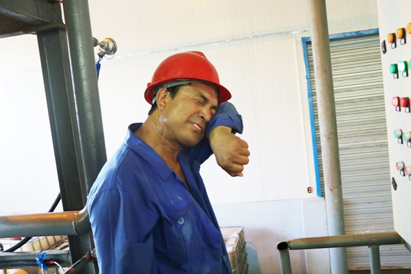 “為確保焚燒系統(tǒng)穩(wěn)定運行,我們每年都要進(jìn)行一次大修,此次大修原計劃20天完成,為緩解產(chǎn)廢企業(yè)高溫下庫存壓力,我們計劃15天完成大修工作?!爆F(xiàn)場一名工人一邊擦汗一邊說。 “最近天氣太熱,我們現(xiàn)在是彈性工作制,但為了趕進(jìn)度,同事們都提前到生產(chǎn)現(xiàn)場了,公司領(lǐng)導(dǎo)給我們發(fā)放了藿香正氣水、茶葉、西瓜、飲料等降溫物品,還安排后勤部門每天為車間工人送綠豆湯。”一名機修工笑著說。炎炎夏日,阻擋不了勞動者們堅守一線;高溫酷暑,只會讓勞動者們奮斗的熱情更勝。(李俊杰 羅洪濱)